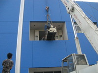 上圖為我大興區吊裝搬運設備公司在大興區進行設備吊裝上樓服務.